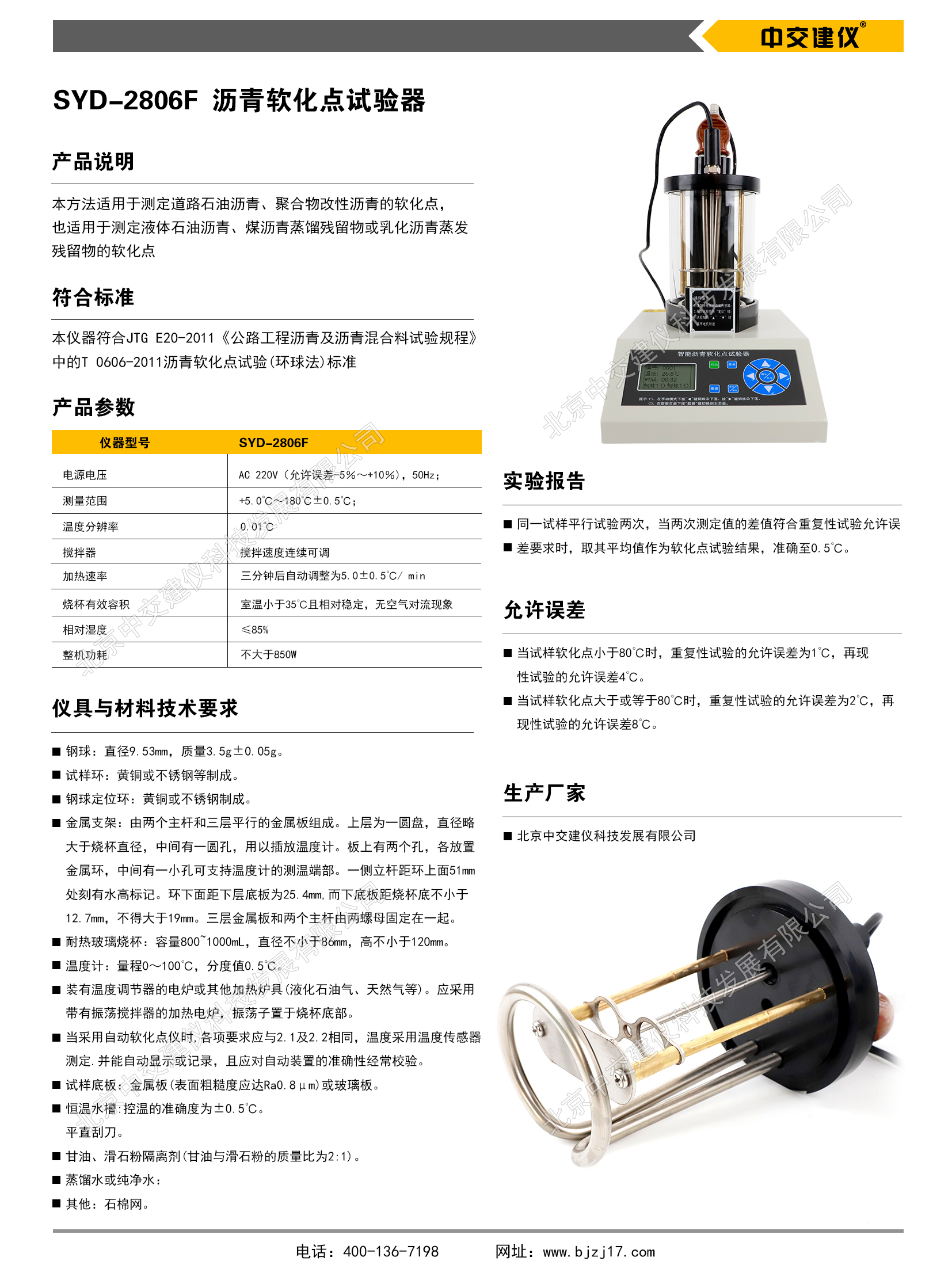 SUD-2806F型智能瀝青軟化點試驗器